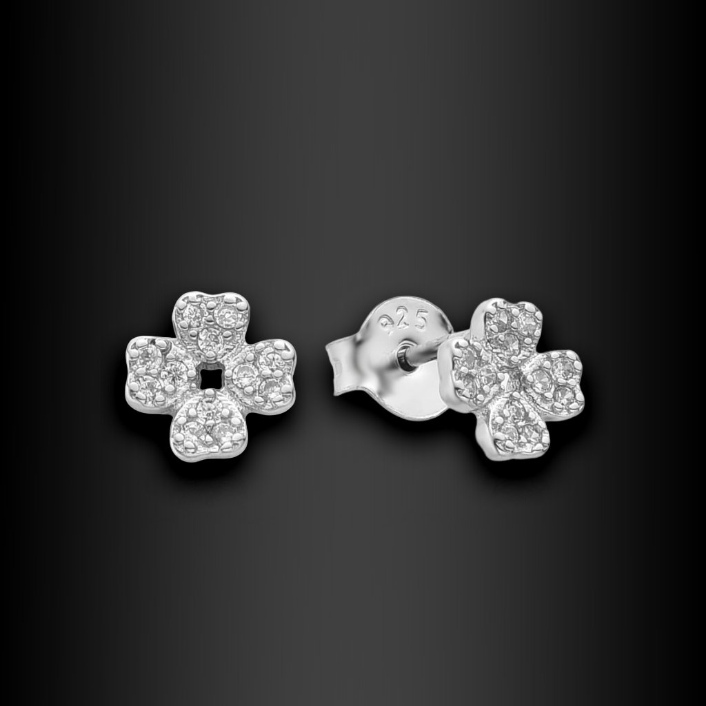 Stříbrné náušnice pecičky Čtyřlístky se zirkony | DG Šperky | Stříbro 925/1000 + Doprava zdarma + Dárkové balení zdarma