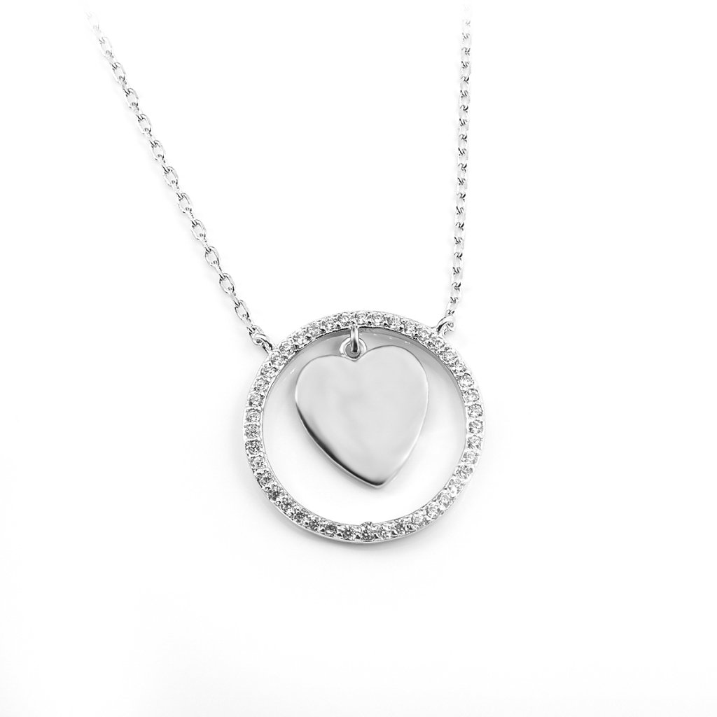 Objevte romantický náhrdelník Amadora, který okouzlí svou jemností a smyslem pro detail. Srdce zavěšené v kruhu symbolizuje nekonečnou lásku a harmonii, zatímco kruh osázený třpytivými zirkony dodává šperku luxusní nádech. Tento exkluzivní šperk je perfektní volbou pro každodenní nošení i speciální příležitosti. Stříbro ryzosti Ag 925/1000 garantuje vysokou kvalitu a dlouhou životnost.