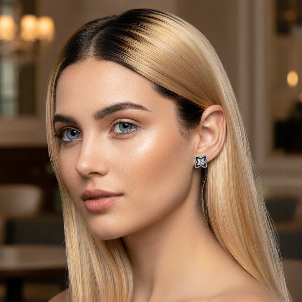 Díky plastickému 3D zpracování náušnice naživo působí výrazněji než na fotografii. Kombinace lesklého kovu, černých detailů a zirkonů vytváří sofistikovaný celek, který se snadno kombinuje s dalšími šperky.