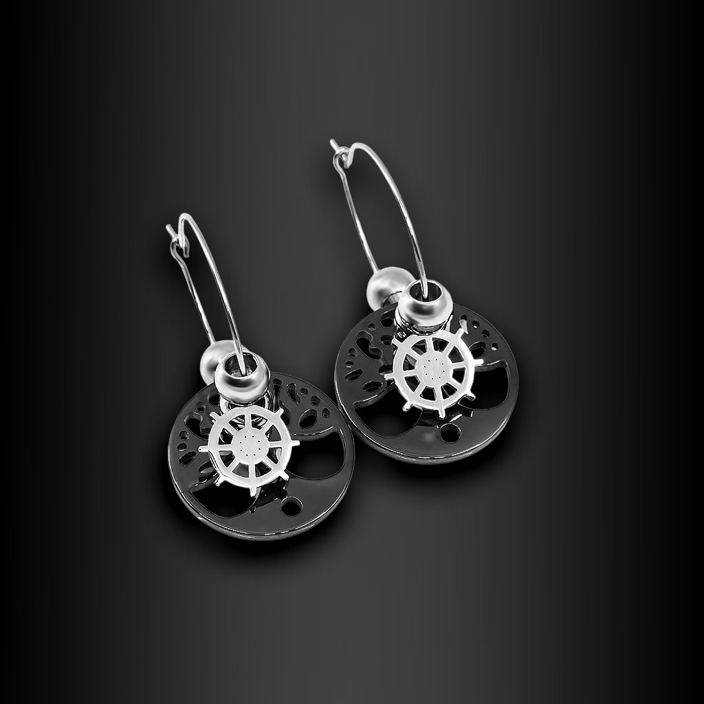 Visací náušnice Strom života ocel s černou keramikou | DG Šperky + Doprava zdarma + Dárkové balení zdarma