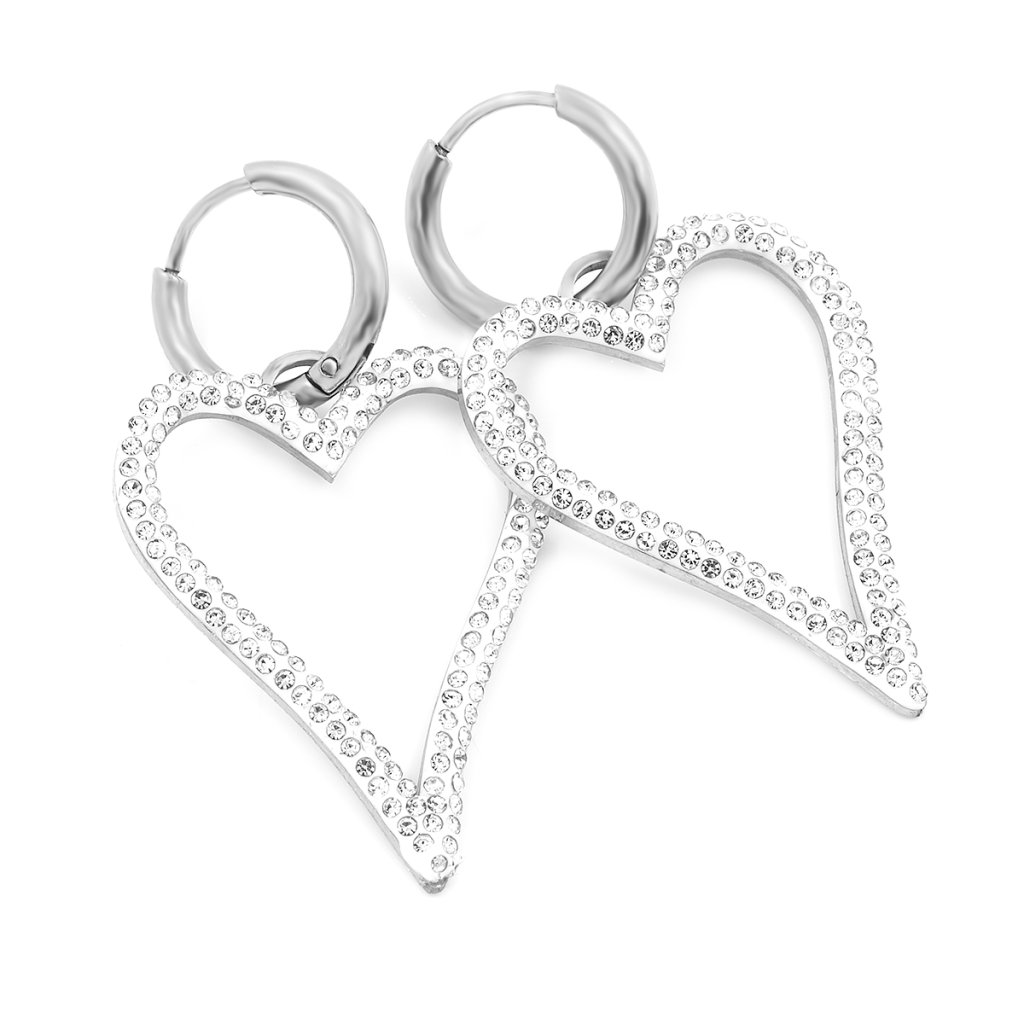 Visací náušnice ve tvaru srdce se Silver zirkony | DG Šperky + Doprava zdarma + Dárkové balení zdarma